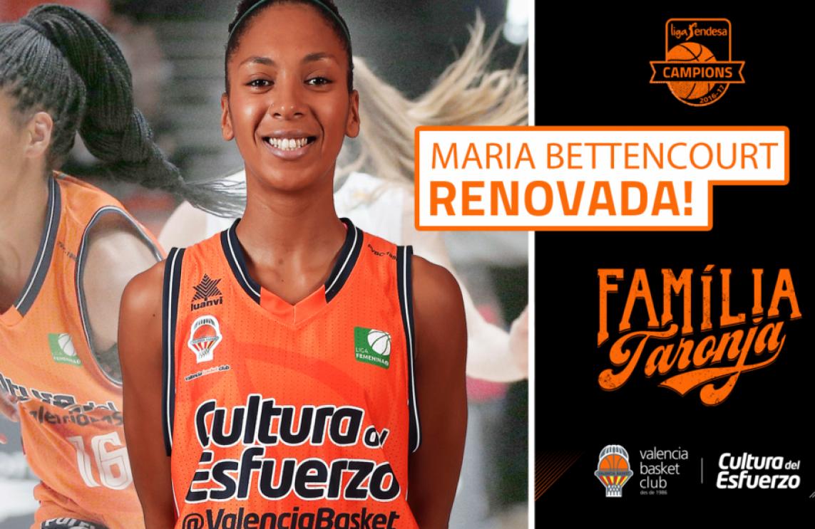 “Estoy muy feliz porque ha sido un gran año con Valencia Basket y tenía muchas ganas de seguir en un proyecto como este” decía la protagonista. Con la continuidad de Maria Bettencourt, Valencia Basket da un paso más en la confección de su proyecto para la próxima temporada. Un proyecto que cuenta ya con 9 piezas: Irene Garí, Esther Díaz, Meiya Tirera, Maria Pina, Anna Gómez, Tamara Abalde, Marina Lizarazu, Joy Brown y la propia Bettencourt.