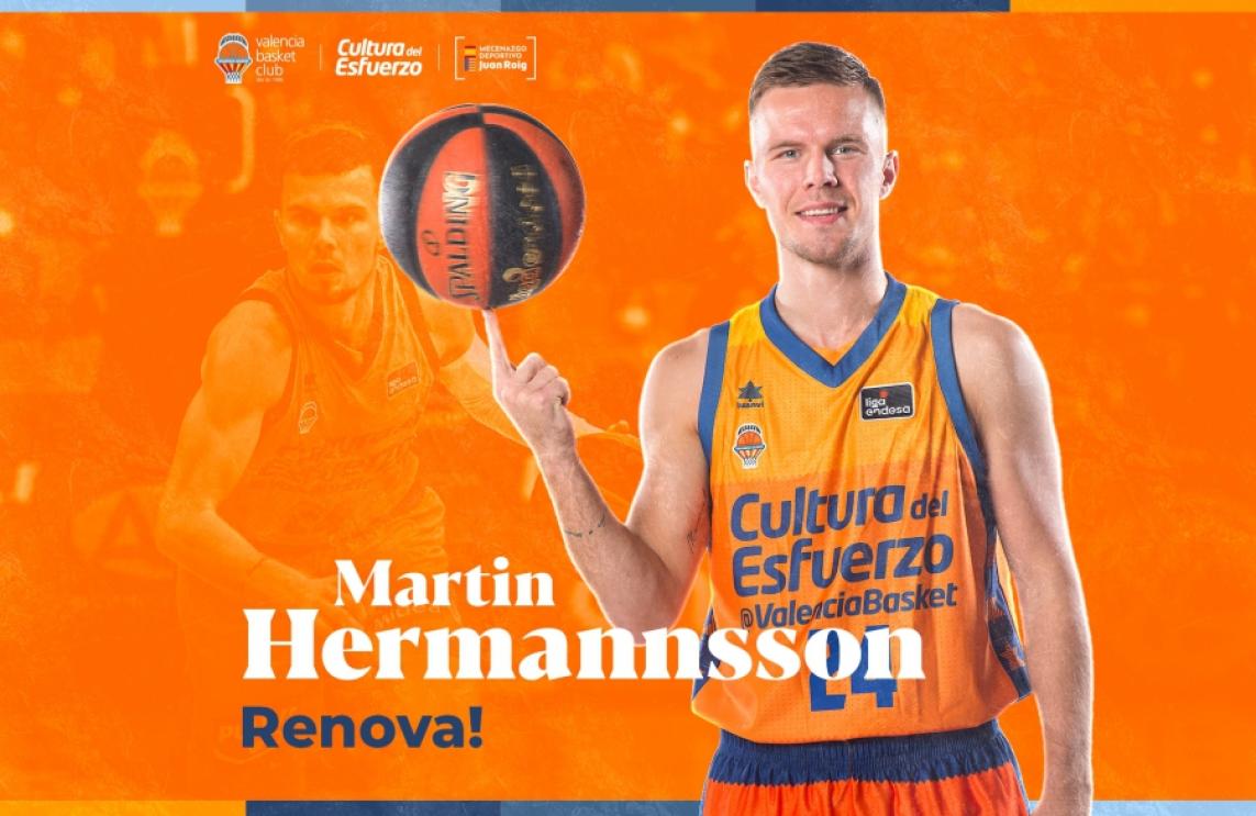 Valencia Basket ha arribat a un acord amb Martin Hermannsson per a allargar el seu contracte per les dues pròximes temporades, fins al 30 de juny de 2024, per la qual cosa el base internacional islandés tornarà a la disciplina del Valencia Basket després de dues temporades com taronja en les quals ha disputat un total de 120 partits. Hermannsson va arribar a València en l'estiu de 2020 procedent de l'equip alemany de l'Alba Berlín i ha acreditat una targeta de 8,2 punts, 1,5 rebots, 3,6 assistències i 8,5 de valoració en la seua etapa amb Valencia Basket.