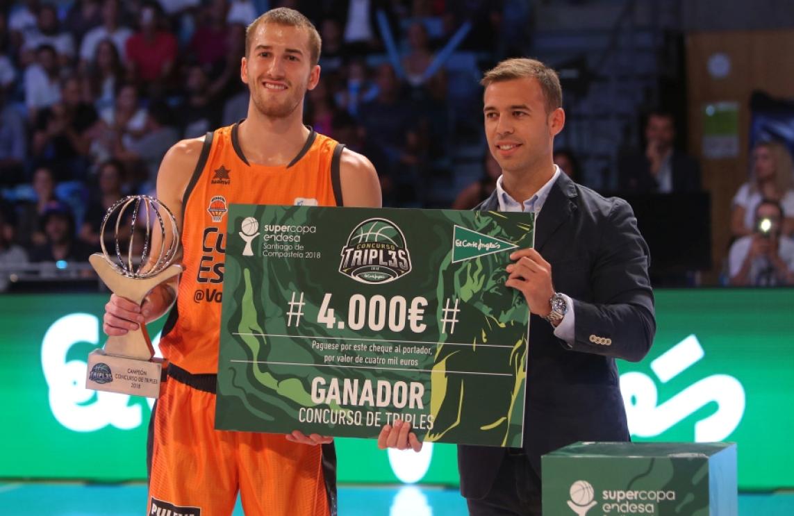 El escolta de Valencia Basket Matt Thomas se ha proclamado esta tarde ganador del concurso de triples El Corte Inglés que se ha disputado en Santiago de Compostela antes de la disputa de la final de la Supercopa Endesa. El nuevo fichaje taronja se convierte en el primer jugador de Valencia Basket que consigue ganar un concurso de triples de la Liga Endesa. Antes que él, el capitán Rafa Martínez (en la temporada 2012-13) y Berni Álvarez (en dos ocasiones, temporada 98-99 y 99-00) habían sido finalistas.