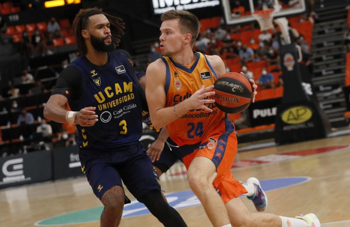 Valencia Basket se vació con los efectivos disponibles y fue por delante durante 33 minutos ante un UCAM Murcia que subió el listón físico tras el descanso para acabar llevándose la victoria de la Fonteta por 86-91. Un equipo taronja agotado trató de engancharse al partido al final con tres triples seguidos de Hermannsson, pero al cuadro visitante defendió bien su ventaja para sumar la victoria, dejando sin premio el esfuerzo de los jugadores disponibles y los jóvenes y el buen partido de Claver (26 puntos) y Dubljevic (22).