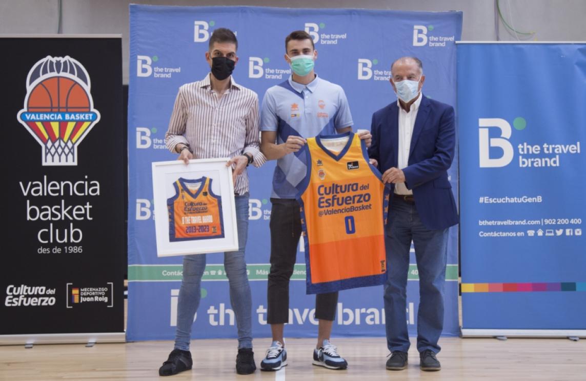 Y como muestra de agradecimiento, Paco Raga le ha hecho entrega a Joan Cano de una camiseta oficial de juego del Valencia Basket con la leyenda “B the travel brand 2013-2023”, conmemorativa de todos los años que estas dos entidades llevan caminando juntas y el tiempo de relación que como mínimo queda por delante.