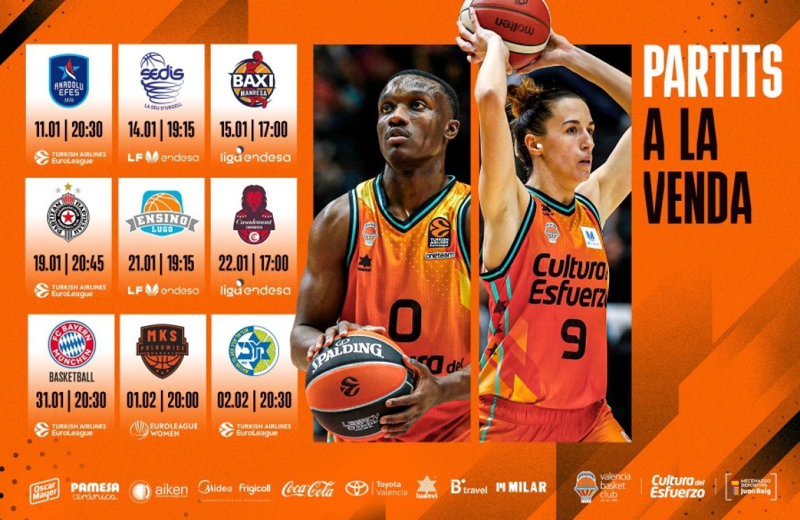 Valencia Basket puts on sale tickets for the next official matches until February 2 from 6:00 p.m. today. 9 more great games to enjoy at La Fonteta! https://valenciabasket.koobin.com/ .