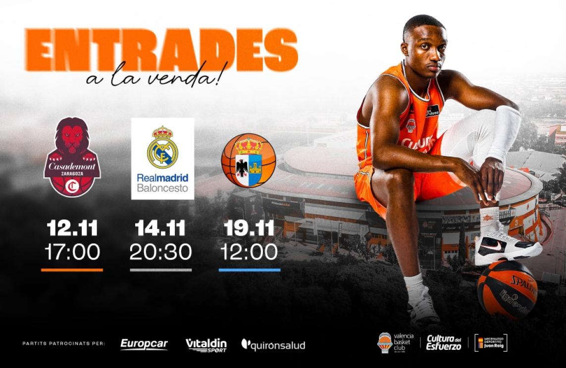 Valencia Basket pone desde las 18h de hoy a la venta las entradas de los próximos partidos de equipo masculino y femenino. Tres nuevos partidos para untotal 5 partidos pasarán a estar disponibles en la web del Club a través de este enlace: https://valenciabasket.koobin.com/.