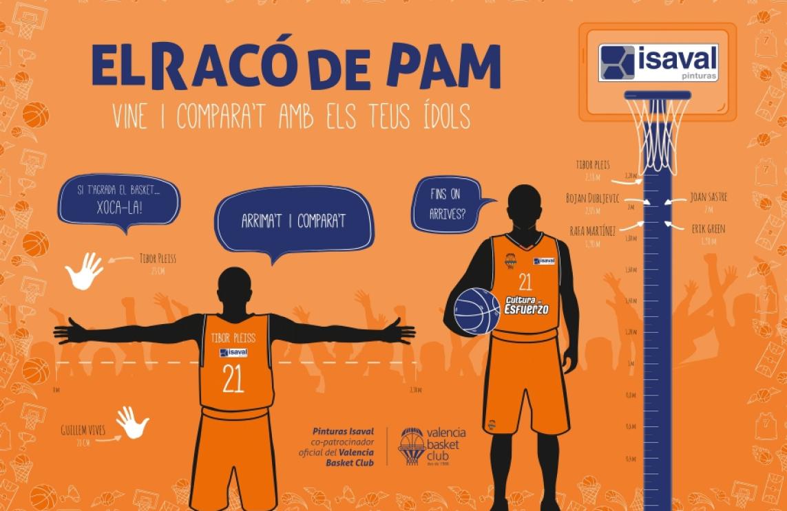 El Racó de la Pintura de Isaval, tot un clàssic de les prèvies dels encontres en la Fonteta, creix en este partit amb la instal·lació d'un espai en el qual podràs comparar la teua alçada, envergadura, la grandària de la teua mà i el dels teus peus amb els dels jugadors de la primera plantilla del Valencia Basket. A més, s'habilitarà un servei de pintacares per a posar en els rostres dels nostres aficionats els nostres colors corporatius. Tot açò sense perdre el tradicional espai en el qual els xiquets i xiquetes que assistisquen al partit poden, baix la supervisió d'una monitora, fer amb les seues pròpies mans unes pancartes d'animació personalitzades a partir d'unes cartolines amb el nostre color corporatiu.