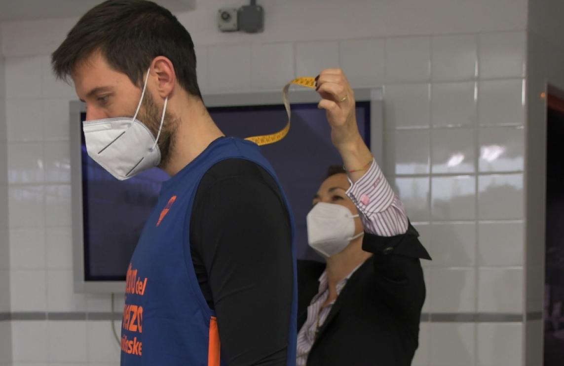 Valencia Basket ha tornat este matí als entrenaments per a començar a preparar esta setmana de doble partit a la Fonteta en la qual començarà rebent al CSKA Moscow el dijous 4 de febrer a les 21.00 hores. Però abans de posar-se a la feina, la primera plantilla masculina i el cos tècnic han realitzat una de les seues tasques anuals tradicionals en posar-se en mans dels professionals de Sastreria Jajoan per a la presa de les seues mides, de cara a acabar de confeccionar el seu nou “outfit” de viatge. Com a novetat d'esta temporada, els jugadors i tècnics taronja lluiran en els desplaçaments de les grans ocasions uns pantalons casuals confeccionats en cotó de color blau marí, combinat amb una camisa model polera de teixit Oxford en color blau.