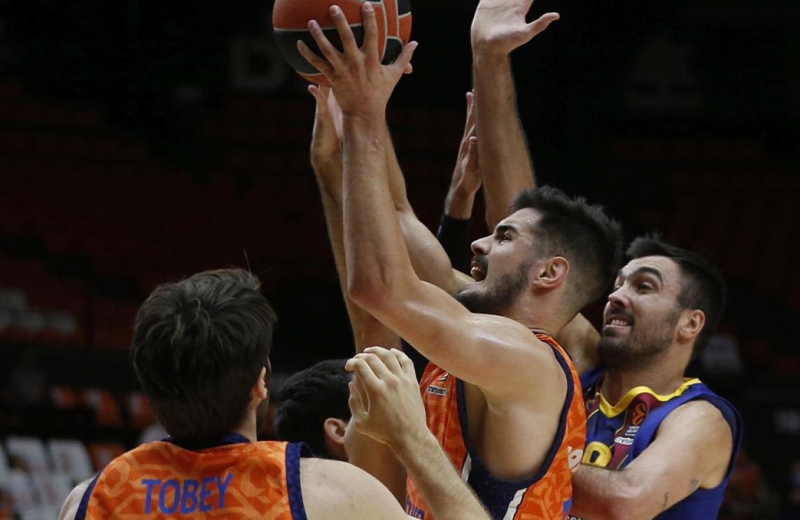 Valencia Basket pagó cara su dificultad para atacar la defensa azulgrana en la recta final del tercer cuarto para sumar su primera derrota en la Turkish Airlines EuroLeague ante el FC Barcelona por 66-71. El equipo taronja encajó un parcial de 0-16 del que trato de recuperarse dando una mejor versión en el último acto y acercándose a cinco puntos, pero no pudo darle la vuelta al partido. Cuando más apretaba el equipo taronja apareció Calathes en ataque y cuando irrumpió Kalinic anotando desde fuera, varias situaciones polémicas cortaron la inercia taronja.