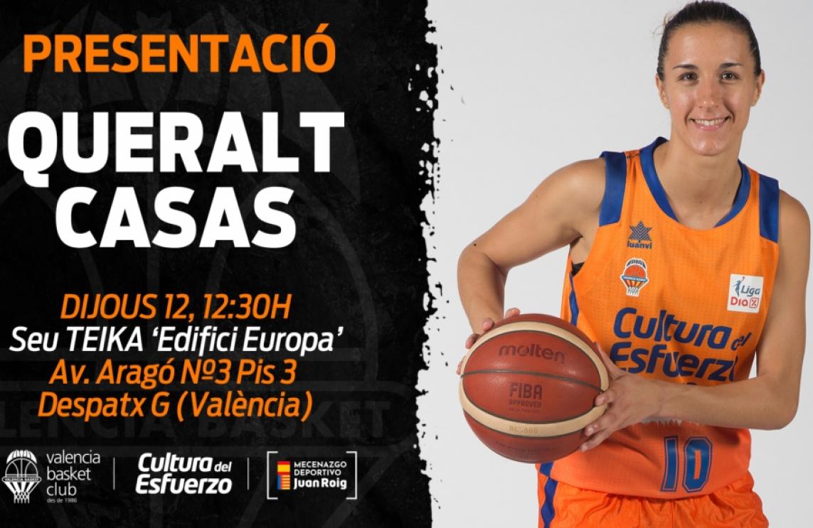 The Spanish international Queralt Casas (1.78m, Girona, 11/18/92, 26 years old) will be presented as a Valencia Basket player tomorrow, Thursday, September 12 at 12:30 p.m. at the Teika headquarters, in the Europa Building located in the Avenida de Aragón number 30. Floor 13 Office G.
