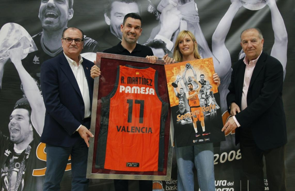 El directiu taronja va aprofitar este moment per a anunciar que Valencia Basket retirarà el dorsal 17 que Rafa Martínez va defensar en els seus partits amb l'equip taronja. I que el Club elevarà la seua camiseta al sostre de la Fonteta i li posarà el seu nom a una de les pistes de L’Alqueria del Basket quan abandone la pràctica del bàsquet professional “perquè la seua Llegenda estiga sempre molt present i el seu exemple continue inspirant a les futures generacions”.