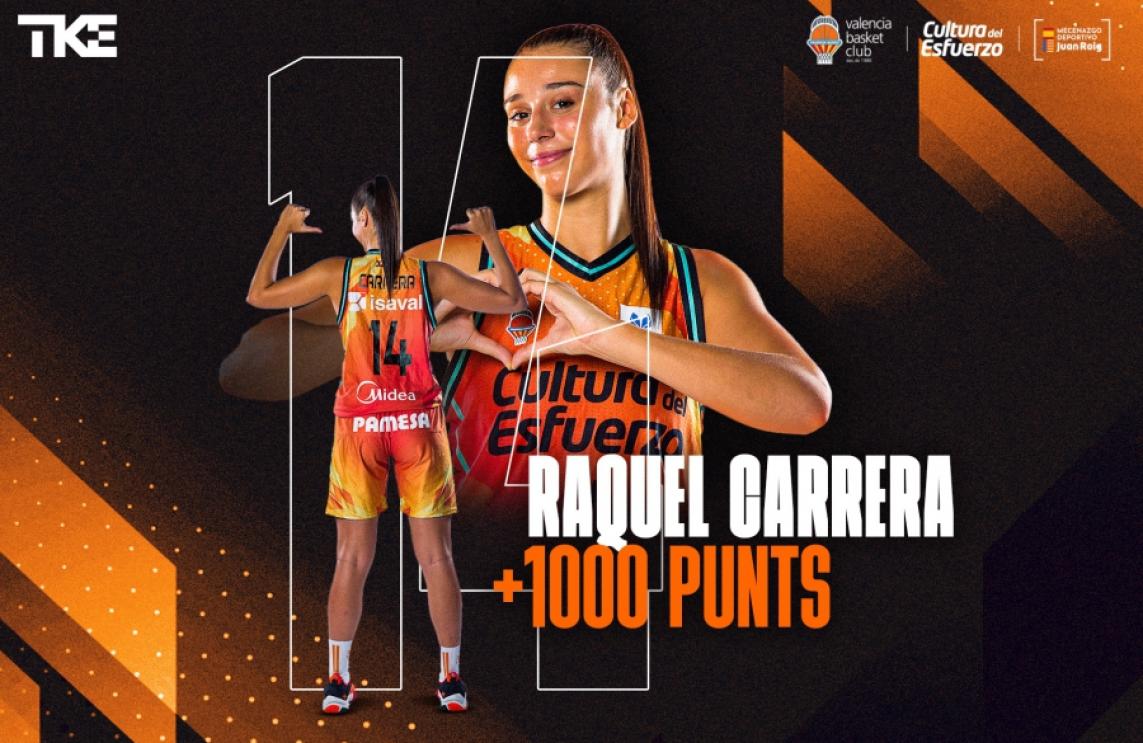 Raquel Carrera sigue dando pasos en la historia del Valencia Basket. Con los 16 puntos que anotó la pasada noche frente a Lointek Gernika, la jugadora gallega ha sobrepasado los 1.000 puntos vestida de taronja. Además, la semana pasada, en las semifinales de Copa, hizo su máxima anotación con el club con 24 puntos.
