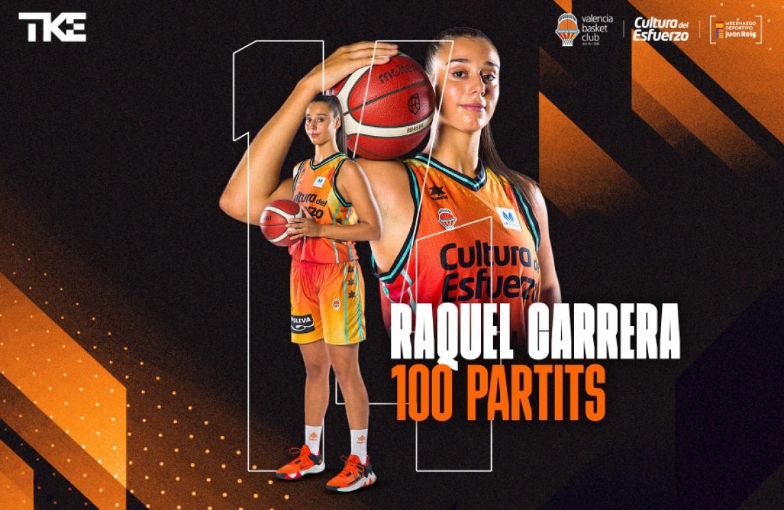 Raquel Carrera fa història amb la camiseta taronja. En la seua tercera temporada en el Club, la gallega ha arribat la xifra de 100 partits amb el Valencia Basket. És la novena jugadora de la secció femenina a aconseguir els tres dígits.