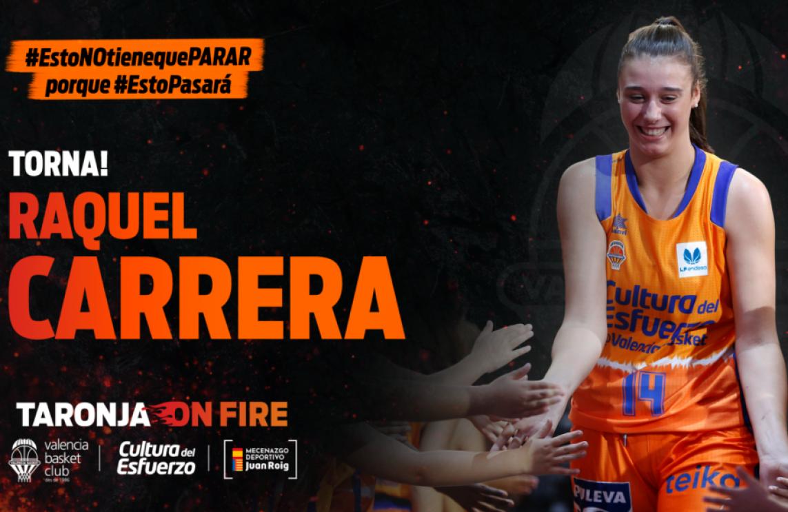 With that objective, Valencia Basket will count on its squad next season with Raquel Carrera (1.89, 18 years old) who with a 4-year contract ahead, will face her second participation in the Endesa Women's League as a Taronja player after her loan last year to RPK Araski in which it has been his debut at the highest level. After her fast establishment in the top league, the player will have the opportunity to keep growing at the Fonteta and go one step further in her promising progression.