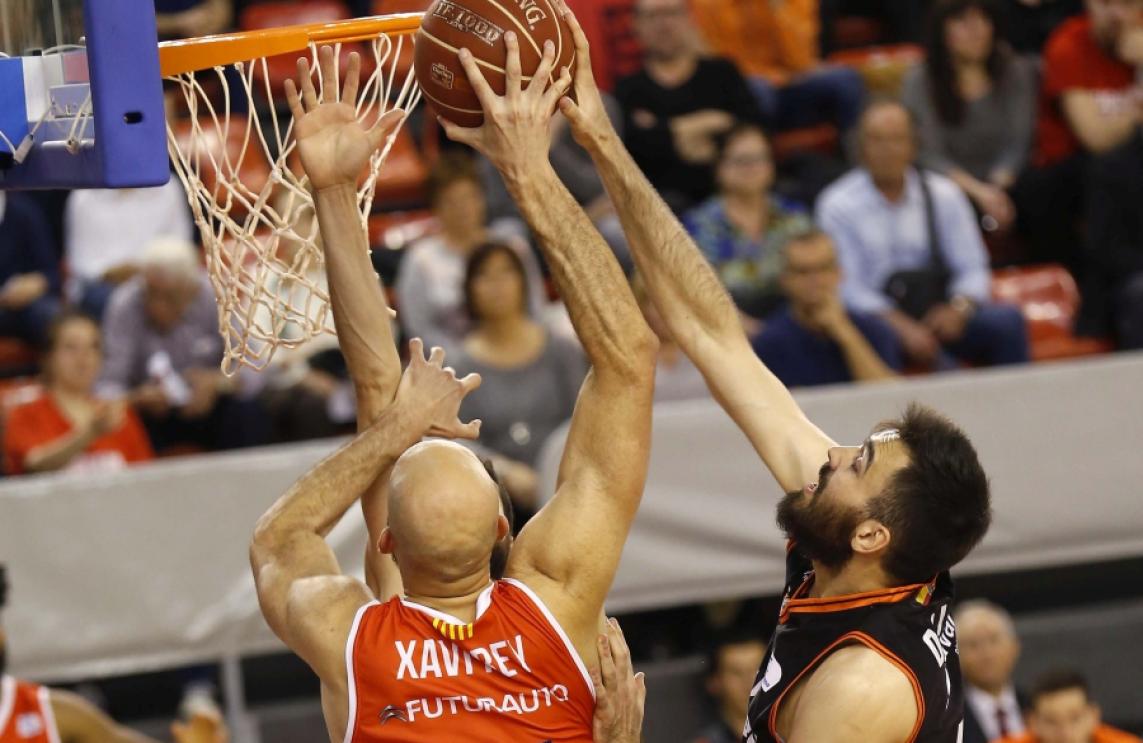 El entrenador Pedro Martínez comenzó el partido poniendo en pista el quinteto formado por Antoine Diot, Joan Sastre, Fernando San Emeterio, Luke Sikma y Pierre Oriola. El base francés, que volvía tras mes y medio de lesión, abrió el marcador taronja con un triple para equilibrar el de Tomàs. Sikma y un nuevo triple de Diot pusieron por delante al equipo taronja (6-8 min.3), y aunque Auda y Machado le dieron la vuelta al marcador, un triple de Vives empató el partido a 11 al paso por el ecuador del primer acto. Dubljevic, un 2+1 de San Emeterio y un nuevo triple de Vives alargaron el parcial a un 0-11 (11-19) hasta que Tomàs lo cortó desde el tiro libre. Una bandeja de Rafa Martínez y un triple de Dubljevic dejaban el marcador en 12-24 al final del primer cuarto.