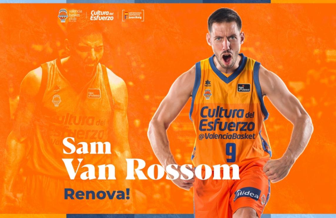 El base Sam Van Rossom i Valencia Basket han arribat a un acord per a què el jugador internacional belga (1.88 m, Gant, 03/06/1986, 36 anys) allargue el seu vincle amb el Club per una temporada més, fins al 30 de juny de 2023. D'esta manera, el director de joc belga es convertirà en el quart jugador de la història del Club que arriba almenys a la desena de temporades defensant els colors del nostre primer equip masculí, al costat de Víctor Luengo, Rafa Martínez i Bojan Dubljevic. Des que arribara al Valencia Basket en l'estiu de 2013, Van Rossom ha sigut part indispensable en els tres títols que ha alçat com taronja (la Liga Endesa 2017 i les Eurocup 2014 i 2019) i en l'últim partit de la temporada passada es va convertir en el quart jugador amb més partits oficials jugats amb el Valencia Basket (435). A més, és l'únic jugador que ha sigut triat dues vegades per l'afició per a guanyar el Trofeu a l'Esforç en categoria masculina. La passada temporada va disputar un total de 38 partits amb unes estadístiques de 7,5 punts amb un 43% d'encert en triples, 3 rebots, 4,1 assistències i 9,1 de valoració en poc més de 20 minuts de mitjana.