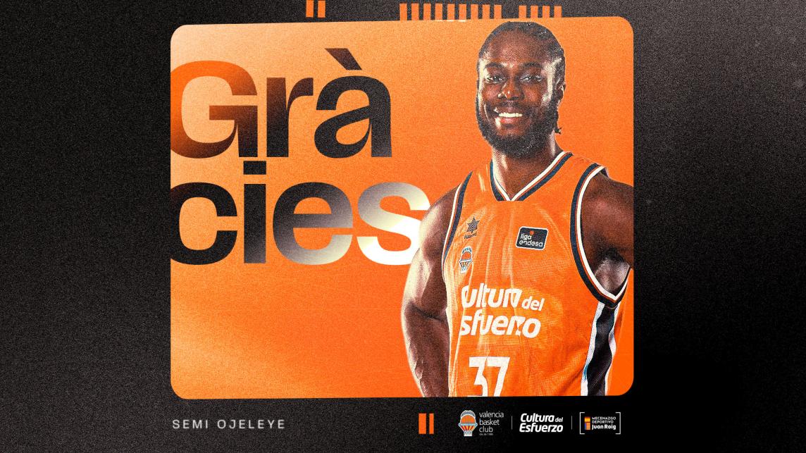 Valencia Basket y Semi Ojeleye (2.01m, Ottawa (Kansas), 05/12/94, 30 años) han acordado la no continuidad del jugador en la entidad taronja la próxima temporada, por lo que el alero norteamericano con pasaporte nigeriano finaliza su etapa en el Club.