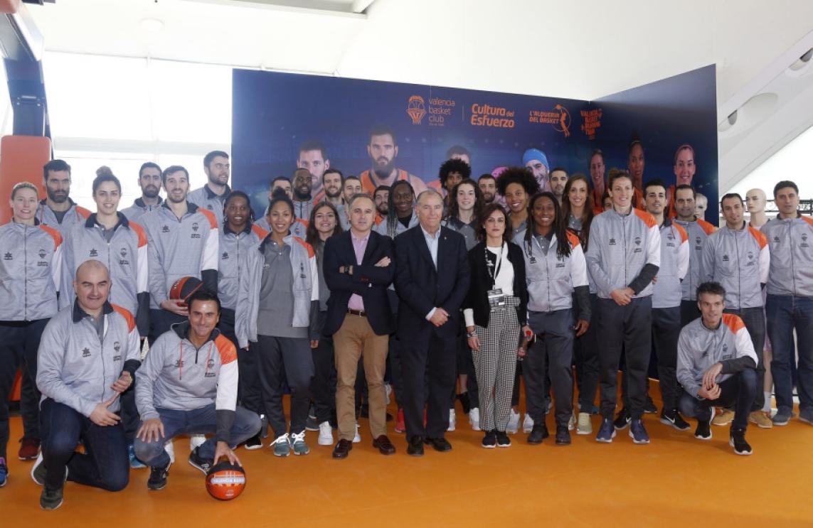 The Valencia-Trinidad Alfonso EDP Marathon Runner’s Fair, installed in the building of the Prince Felipe Museum and the Hemisfèric on the occasion of the celebration of the Sunday of the Marathon, has received a high-altitude visit this morning. The Men’s and Women’s teams of our Club have showed before their practices in the stand that Valencia Basket has installed in this enclosure.