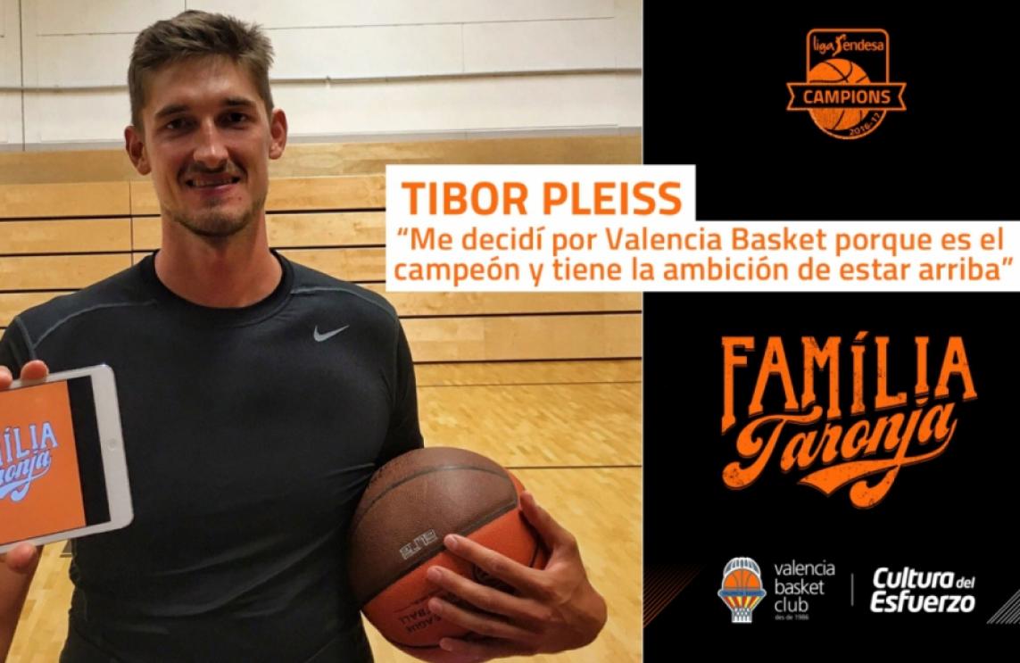 El pívot alemán Tibor Pleiss apura sus últimos días de vacaciones sin descuidar el trabajo individual para llegar en estado óptimo al inicio de la pretemporada, que arranca en once días. El nuevo center taronja aprovecha un parón en su rutina de trabajo para posar como miembro de la familia taronja y para hacer sus primeras declaraciones como jugador del Valencia Basket.