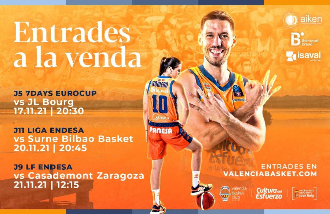 After reactivating the global and women's tickets with the return of 80% of the capacity to the gym following the sanitary measures established by the competent authorities, Valencia Basket is now selling tickets exclusively online to witness the four games that our teams will play as locals next week.
