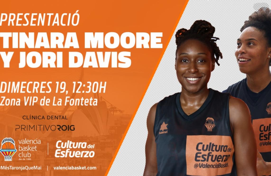 Tinara Moore (1.90, USA, 05/04/1995, 23 years) and Jori Davis (1.75m, Rochester (NY), 29 years) will be officially presented as new taronja players tomorrow at 12:30 p.m. VIP area of the Fonteta. The new players will be accompanied on the event by the president of Valencia Basket, Vicente Solá, the CEO, Paco Raga, and Primitivo Roig, CEO of Primitivo Roig.