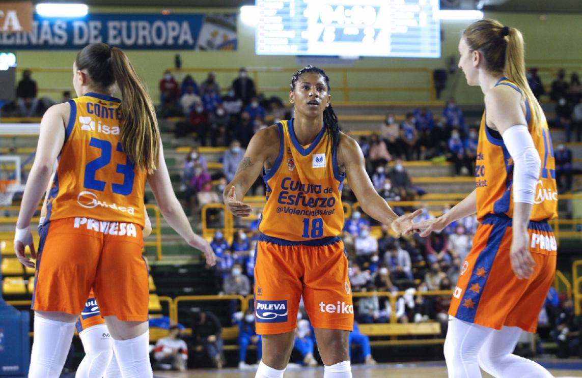 Gómez inauguraba el último cuarto desde el triple reduciendo a 10, pero el conjunto taronja no pudo continuar ese inicio de remontada. Además, la capitana había tenido que abandonar la pista con molestias. Copper no tardaba en devolver la diferencia a 13 y Rubén Burgos lo paraba. Valencia Basket estaba vaciándose, aunque no le salieran las cosas. Rodríguez ponía la máxima en 16 puntos. Gil lo frenaba y las taronja conseguían reducir a 8 puntos a base de insistencia con un parcial de 6-0. Quedaban 3 minutos de partido. Un triple de Samuelson podría haber congelado las opciones de Valencia Basket, que no se dejó amilanar y respondió con 5 puntos seguidos de Gülich que recortaban a 6. Domínguez anotaba a continuación. Las taronja volvían a arremeter con un 4-0 y la diferencia quedaba en 4 puntos a falta de 36 segundos. Las de Rubén Burgos lo intentaron, pero las locales se llevaron la victoria.