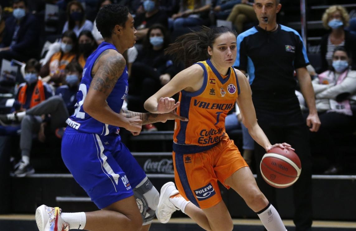 Las de Rubén Burgos salieron a pista con Leticia Romero, Queralt Casas, Ángela Salvadores, Celeste Trahan-Davis y Marie Gülich. Inauguraba el partido Katanic y Salvadores estrenaba a las taronja. La asfixiante defensa visitante dejó a penas espacio a las jugadoras taronja para anotar en los primeros compases. Por fortuna, a Salvadores no se le encogió la mano en ese momento. El partido estaba yendo a muy pocos puntos para ambos equipos. Salvadores marcó el camino durante los minutos con falta de acierto y Gil puso la primera pequeña ventaja en 6 puntos, que Resimont redujo desde el triple. Las dos protagonistas taronja volvieron a aumentar la renta, que llegaba a 8 al final del primer cuarto.