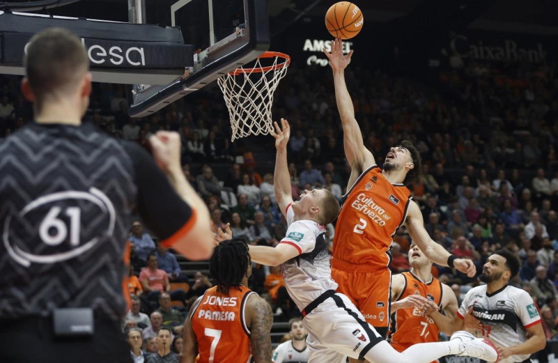 Valencia Basket certificó su condición de cabeza de serie en el sorteo de la Copa del Rey 2025 con un sólido triunfo colectivo ante el Covirán Granada por 120-94 con nueve jugadores con 14+ de valoración y donde superó su récord de asistencias en acb (34) en un partido en el que nos pusimos por delante con un parcial de 10-0 en el primer cuarto y nos beneficiamos de nuestro acierto desde el triple (12/17 al descanso) para ir subiendo su casillero ofensivo y conseguir un nuevo récord de anotación en una primera mitad acb con 67 puntos convertidos y una renta significativa al llegar al intermedio. Tras el descanso, nos levantamos el pie del acelerador ofensivo y la ventaja llegó en algunos momentos a superar la treintena coincidiendo con momentos de acierto de Brancou o Badio y que la Fonteta disfrutara con el juego de su equipo hasta el final.