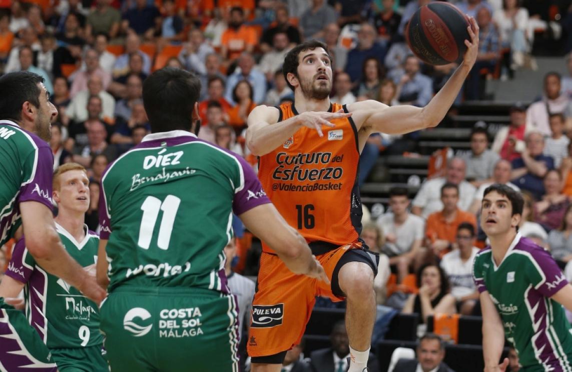 El cuadro andaluz se impone en el primer partido con una gran actuación de Dragan Milosavljevic, autor de 28 puntos, con lo que recupera la ventaja de campo. El domingo, segundo asalto en Málaga, Valencia Basket deberá vencer para forzar un tercer partido en Valencia.