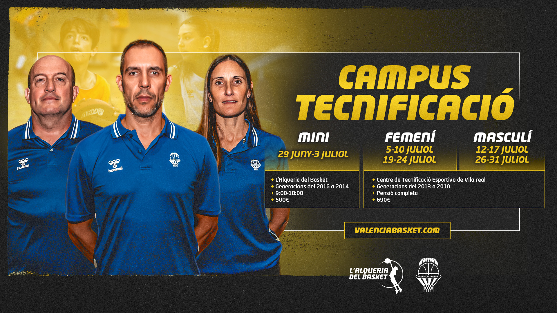 El Campus de Tecnificació Mini (2014-2016) tindrà lloc en L’Alqueria del Basket, mentre que el Femení i el Masculí (2010-2013) se celebraran en el Centre de Tecnificación de Vila-real.