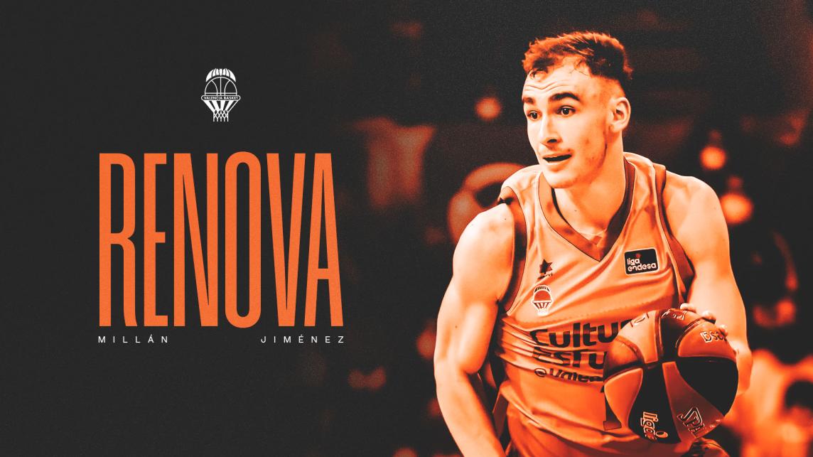 Valencia Basket ha arribat a un acord amb l'escortaMillán Jiménez (1.99m,Calahorra, 16/09/2002, 22 anys) pera ampliar el seu contracte amb l'entitat taronja per a les tres pròximestemporades, fins al 30 de juny de 2028.