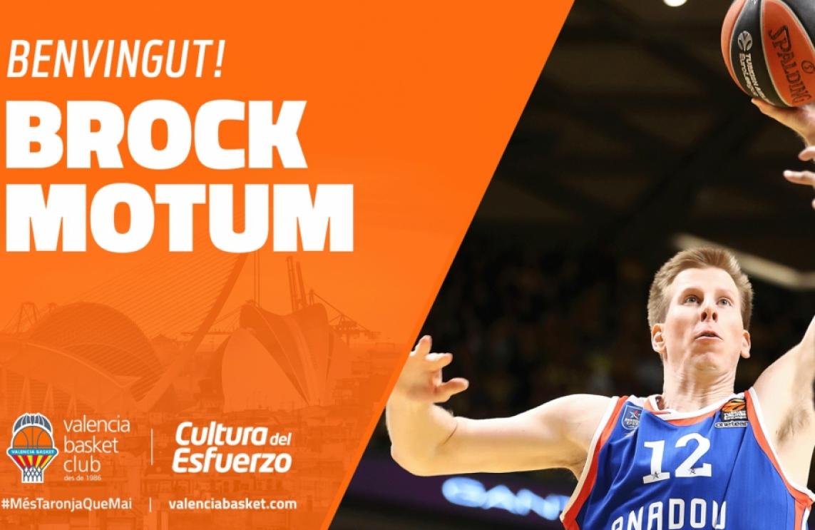 Valencia Basket ha aconseguit un acord amb l'ala- pívot australià amb nacionalitat lituana Brock Motum (2.08m, Sunnybank (Brisbane), 16/10/1990, 28 anys) que s'incorporarà a la disciplina taronja per a les dos pròximes temporades, fins al 30 de juny de 2021. Motum arriba procedent de l'Anadolu Efes turc, equip en què ha jugat les dos últimes temporades i amb el que esta campanya 2018-19 ha sigut subcampió de la Turkish Airlines Euroleague i campió de la Lliga turca. Els seus números d'esta temporada han sigut de 6,5 punts amb un 44% en triples en la màxima competició continental i de 17,4 punts amb un 42% en triples i 5,5 rebots per a 16,9 de valoració en la lliga nacional de Turquia.