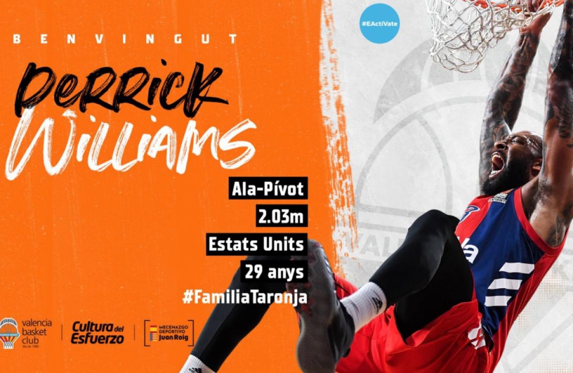 Valencia Basket ha aconseguit un acord per a incorporar a la seua primera plantilla masculina a l'ala pivot nord-americà Derrick Williams (2.03m, Belflower, Califòrnia (els Estats Units), 25/05/1991, 29 anys) per a la pròxima temporada. El jugador prové de l'equip turc del Fenerbahce Beko, amb el qual ha completat la seua segona temporada en la Turkish Airlines Euroleague després de completar l'any anterior en l'FC Bayern Munic.