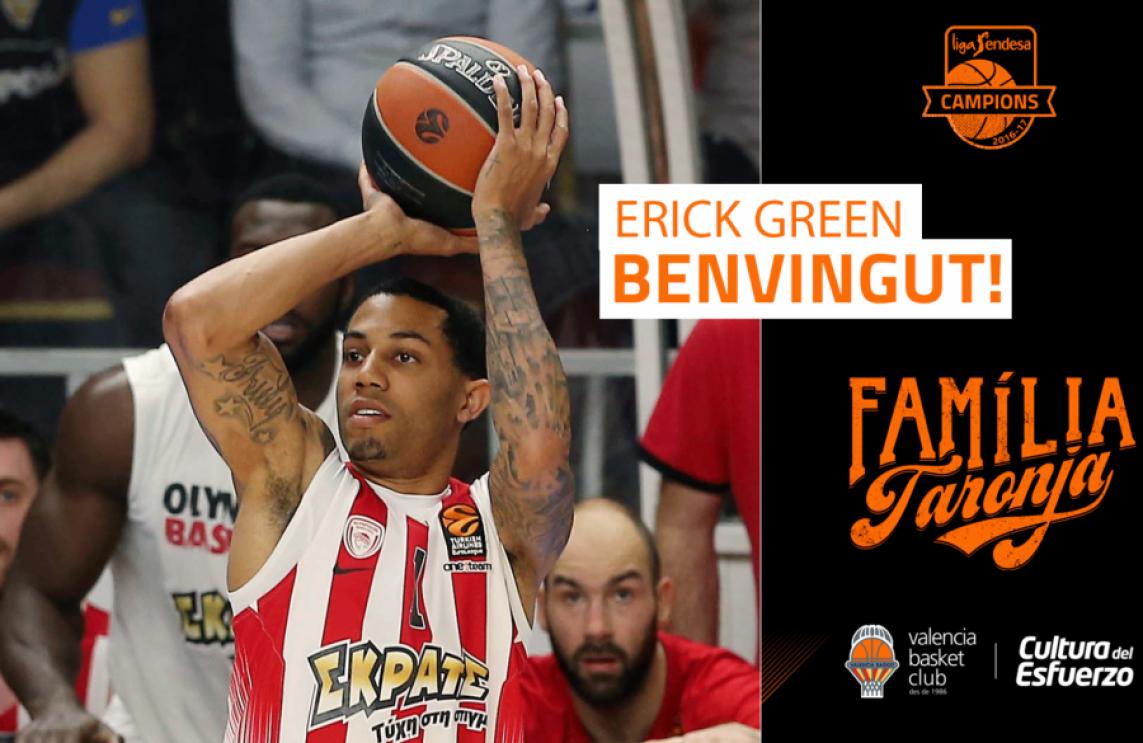 València Basket ha aconseguit un acord amb el base-escorta nord-americà Erick Green (1.90m, Inglewood, Califòrnia, 09/05/1992, 25 anys), que s'incorporarà a la disciplina taronja per a la pròxima temporada, fins al 30 de juny de 2018. El jugador procedix d'Olympiacos, amb el que va ser finalista de la passada Eurolliga.