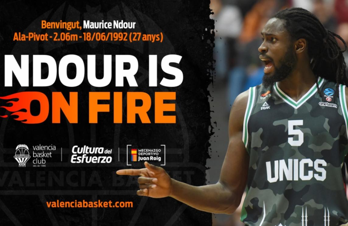 València Basket ha aconseguit un acord amb el pívot senegalés Maurice Ndour (2.06m, Sindia (Senegal), 18/06/1992, 27 anys) que s'incorporarà a la disciplina taronja per la próxima temporada, fins al 30 de juny de 2020. Ndour ha jugat les últimes dos temporades en UNICS Kazan, en una d'elles junt amb Quino Colom, recentment incorporat.