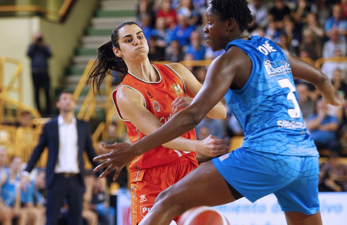 El conjunt taronja va saltar a la pista amb Leticia Romero, Queralt Casas, Bec Allen, Nadia Fingall i Merrit Hempe. La protagonista del partit en l'inici era Fingall, amb un 5-0 particular en contraatac. Vilaró i Koné responien amb un 10-0 per a Perfumerías Avenida. De nou apareixia Fingall per a parar-ho. Valencia Basket estava tingut problemes en els canvis defensius, la qual cosa estava provocant que les locals tiraren de tres alliberades i, a més, amb encert. Per sort, a les de Rubén Burgos també els estaven entrenant els tirs i hi havia igualtat en el marcador. A més del tir exterior, el combinat de Pepe Vázquez estava fent mal sota el cércol. Bons minuts taronja a continuació amb un 5-0 per a posar-se un a dalt, però Prince anotava per partida doble per a retornar l'avantatge a les de Salamanca al final del quart.