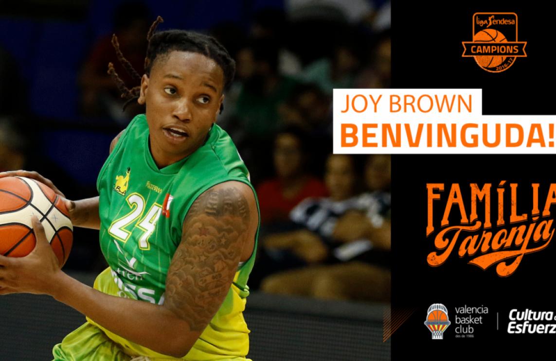 València Basket ha aconseguit un acord amb la aler americana Joy Brown (1.80, Orlando, 28/05/1993, 24 anys) perquè es convertisca en el quint reforç taronja de cara a afrontar el repte de la Lliga Dia. La jugadora, que afrontarà la seua tercera temporada a Espanya, s'incorporarà a la disciplina del club, una vegada haja superat la revisió mèdica, per a la pròxima temporada.