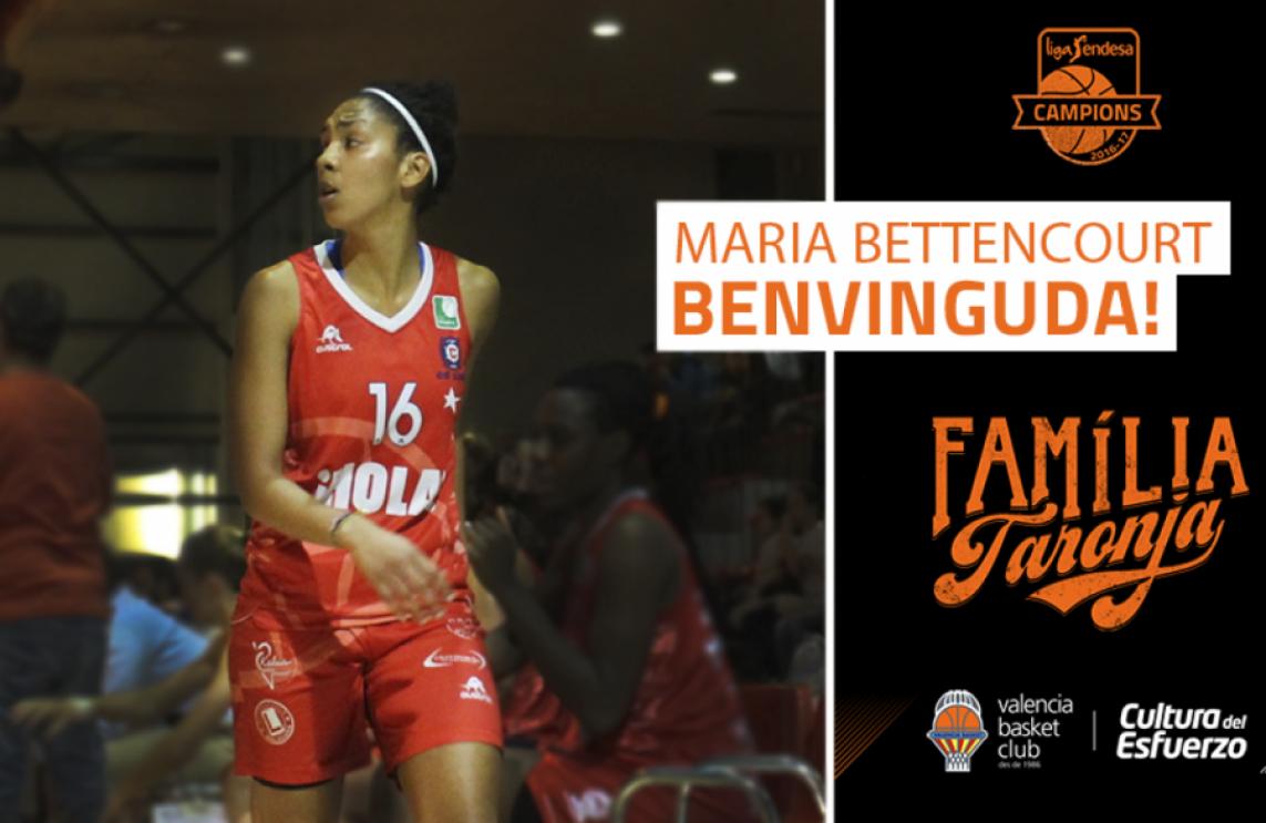La jugadora Maria Joao Bettencourt Correia (Base-escolta, 1.72, 28/02/1991, 26 años. Funchal (Portugal) se incorpora durante una temporada alsenior femenino de Valencia Basket para la segunda campaña en Liga Femenina 2 de nuestra historia. La exterior internacional lusa proviene del C.R.E.F ¡Hola! de la Liga Femenina, en el que la pasada campaña promedió 6,1 puntos y 2,6 rebotes en la máxima categoría del baloncesto nacional