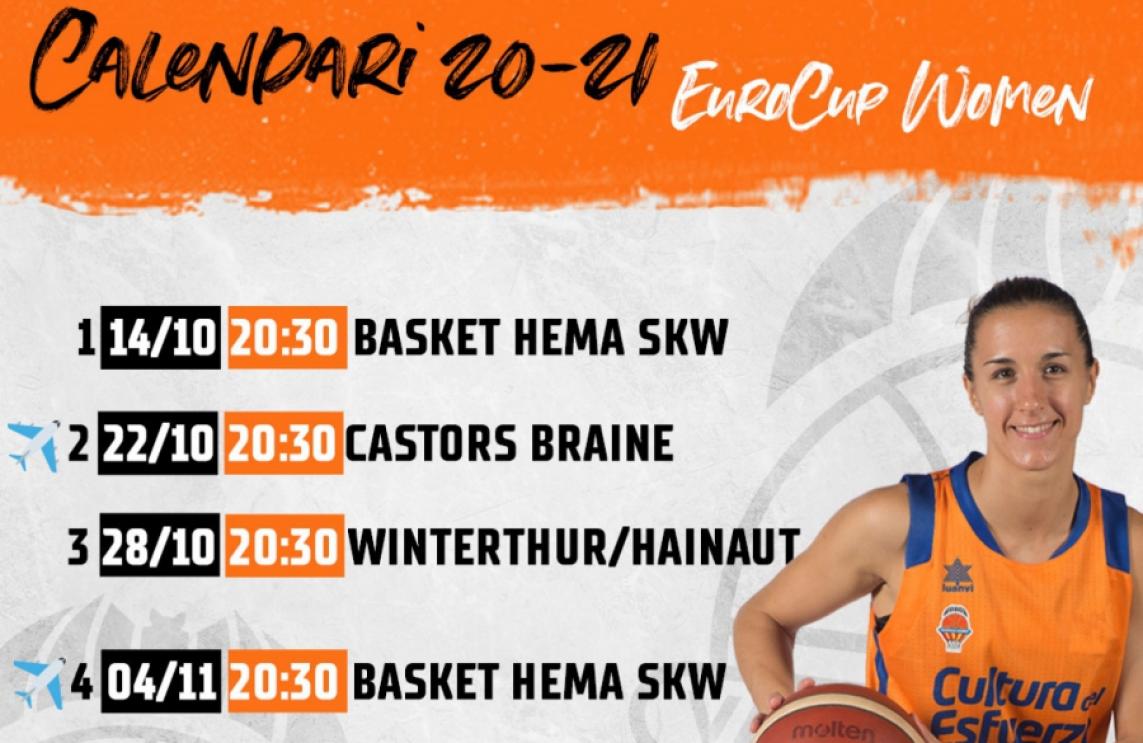 Valencia Basket es mesurarà primer a Basket Hema en la Fonteta, viatjarà a Bèlgica per a mesurar-se a Castors Braine a domicili i rebrà a Winterthur o Hainaut a casa, en les tres primeres jornades de la fase regular. Els dos millors equips del grup passaran a octaus de final.
