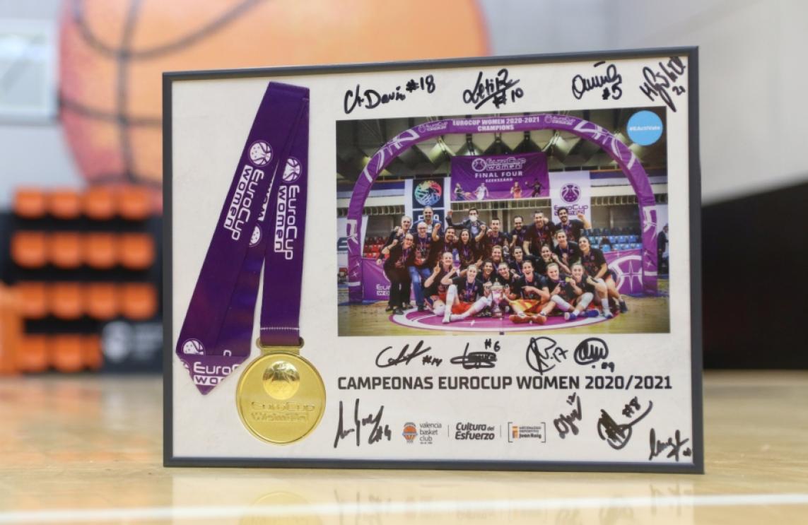 Una peça de col·leccionista, un record únic i inesborrable d'un moment per a la nostra història. Licitació per la medalla original de campiones de l'Eurocup Women, acompanyada per un quadre commemoratiu signat per tota la plantilla, del primer títol femení de la nostra història, aconseguit l'11 d'abril de 2021 a Hongria.