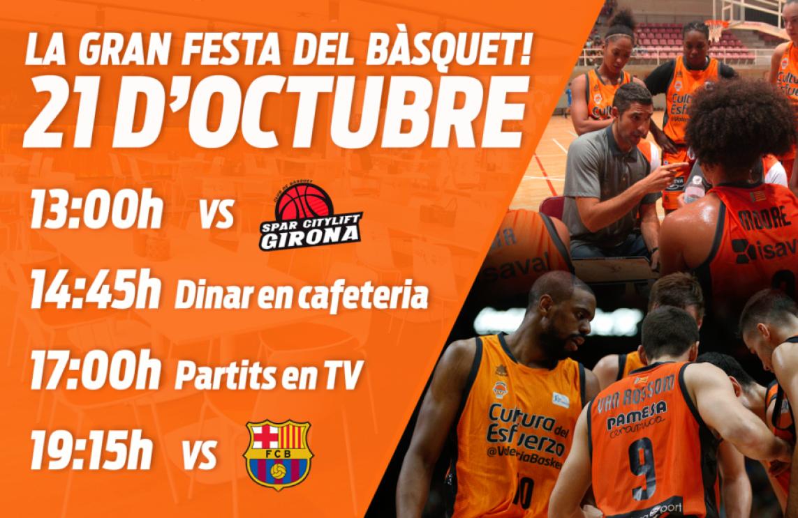 Valencia Basket is preparing to live a historic day, the first in which its first two teams, both male and female, play official competition in the Fonteta. It will happen this next Sunday, October 21, with the match of Liga Dia between Valencia Basket and Spart Citylift Girona at 13 hours and with the Endesa League match between Valencia Basket and FC Barcelona Lassa at 7:15 p.m. For this, the taronja club is developing a series of initiatives to turn this 21st into "the great festa de bàsquet", among which is the possibility of eating at L'Alqueria del Basket.