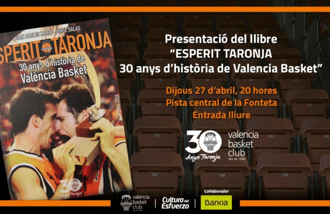 Valencia Basket presentará el libro conmemorativo de su trigésimo aniversario “Esperit Taronja. 30 anys d’història de València Basket” en un acto que tendrá lugar en la pista central de la Fonteta el jueves 27 de abril de 2017 a las 20:00 horas con entrada libre para los aficionados.