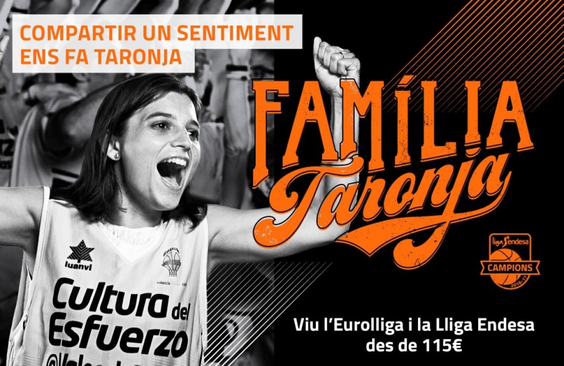 Valencia Basket Club ha presentat hui la campanya de renovació i venda d'abonaments per a la temporada 2017-18, baix el lema “COMPARTIR UN SENTIMENT ENS FA TARONJA”, perquè després de 30 anys i de l'èxit de la consecució del Títol de Liga Endesa, l'afició, els jugadors i l'entorn del Club, compartim un sentiment que ens fa formar part de la gran “FAMÍLIA TARONJA”.