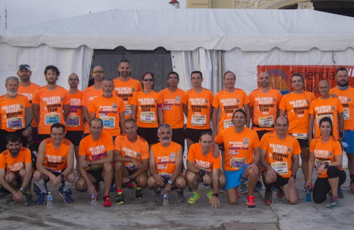 Alrededor de una cincuentena de corredores del Valencia Basket Running Team han tomado parte esta mañana de la Media Maratón Valencia Trinidad Alfonso. Otros muchos componentes de la familia taronja que no han participado en la carrera han acudido a apoyarles en el Punto de Animación que ha estado situado en la Plaza del Ayuntamiento.