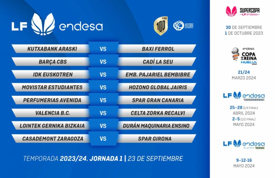 Valencia Basket has known the full schedule for the next season of the Endesa Women's League this afternoon. The Taronja squad will begin their title defense at La Fonteta vs. Celta Zorka Recalvi in ​​a competition that will open the curtain on September 23, 2023. Dates are subject to change and times are yet to be confirmed.