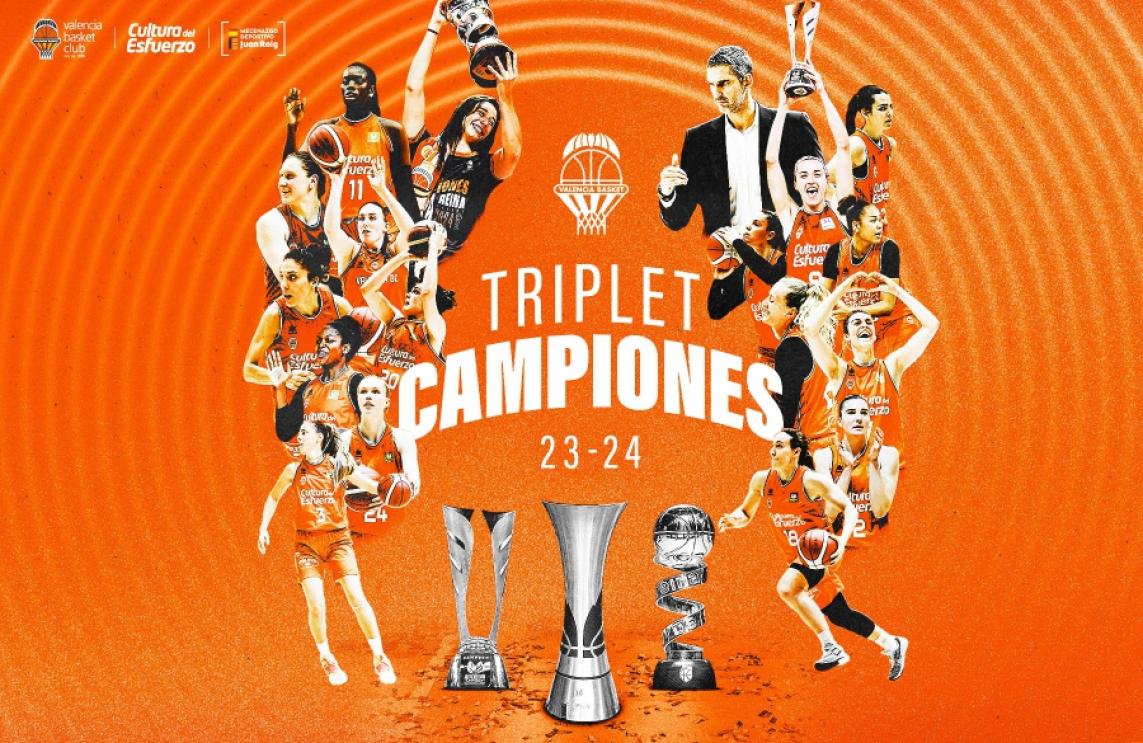 El equipo femenino de Valencia Basket se ha alzado hoy con el título de la Liga Femenina Endesa, que ha conseguido revalidar de forma brillante ante Perfumerías Avenida llevándose los dos primeros envites de la final. El título sirve a su vez para cerrar un histórico triplete nacional en una temporada para el recuerdo, consiguiendo así Supercopa, Copa de la Reina y liga.