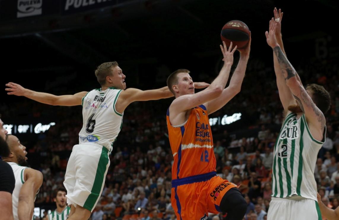 Valencia Basket sumó su segundo triunfo en la Liga Endesa tras imponerse al Coosur Real Betis por 95-72 en un partido en el que fue por delante desde el inicio desde un parcial de 9-0 en el primer cuarto. El equipo taronja resistió al acierto en el triple de los sevillanos en el segundo, estiró su ventaja hasta los veinte en el tercero y sorteó las trampas tácticas planteadas por el rival para certificar la victoria en el último. Motum y Dubljevic con 14 puntos y Colom y San Emeterio con 11 fueron los más destacados en un nuevo triunfo coral.