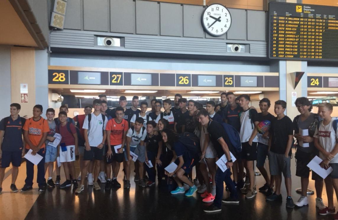 The 40 Spanish players who already completed in April the spots available for the third edition of the Worcester-Valencia Basket International Basketball Camp 2018 have left this morning from the airport of Manises to the United Kingdom to unify the practice of basketball with the English language learning for eight days. There they will meet with international campers to graze the figure of a hundred young participants in this unforgettable experience.