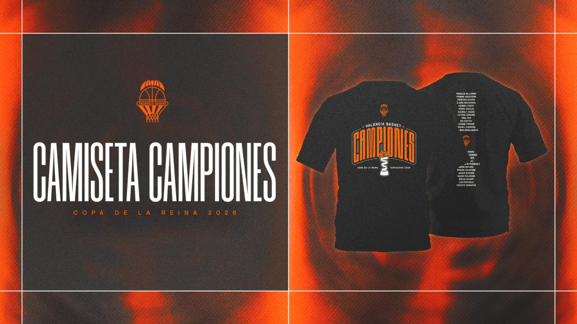Valencia Basket pone a la venta ala camiseta oficial de las campeonas de la Copa de la Reina 2026. Tras haberse impuesto en la final a Hozono Global Jairis, las jugadoras de Rubén Burgos consiguieron su segundo título y ahora tienes la oportunidad de hacerte con el mejor recuerdo posible.
